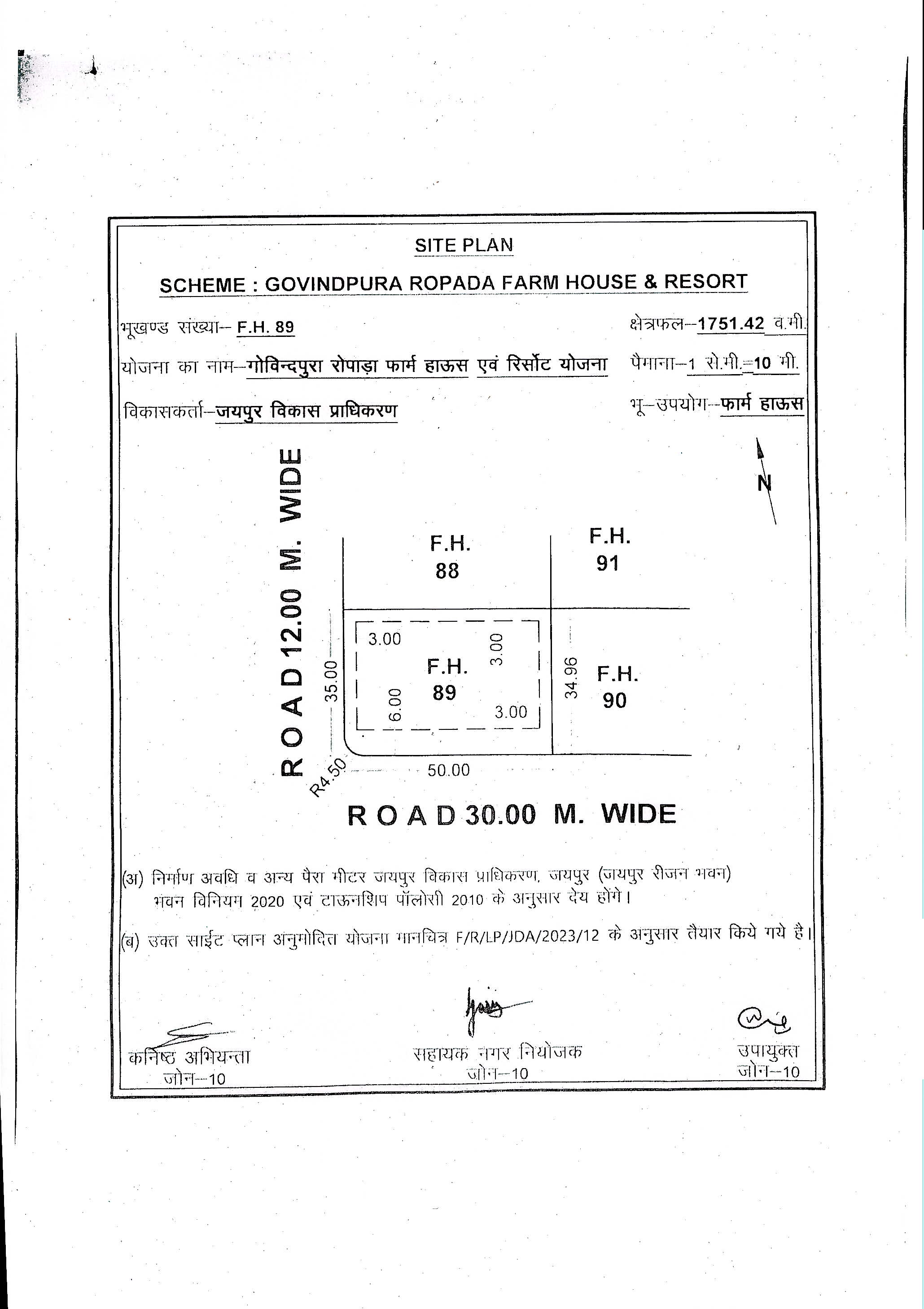 | Remarks | : | Farm House Plot No. FH-89(Corner) Govindpura Ropada Scheme, Jaipur | |||||||