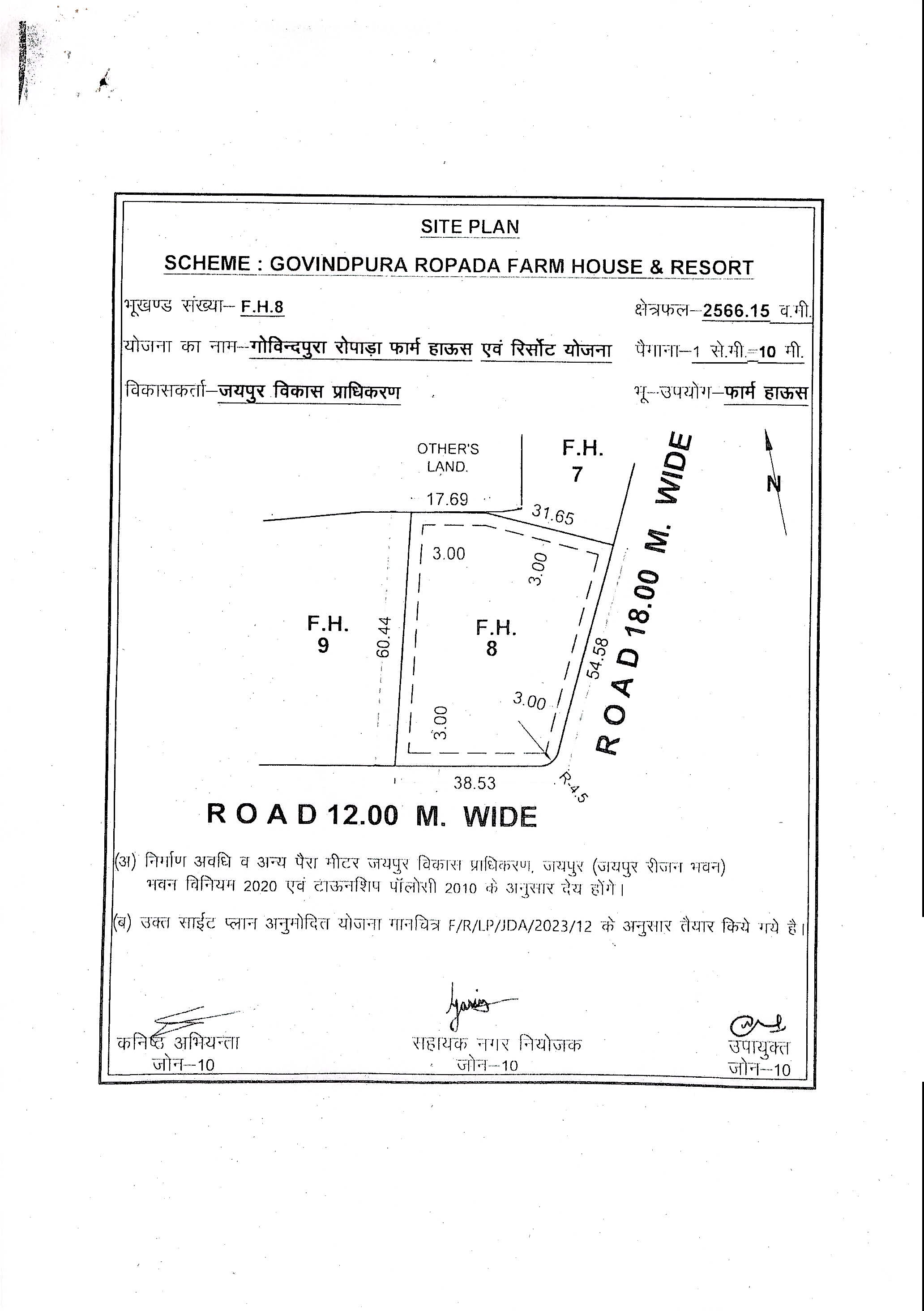 | Remarks | : | Farm House Plot No. FH-8(Corner) Govindpura Ropada Scheme, Jaipur | |||||||