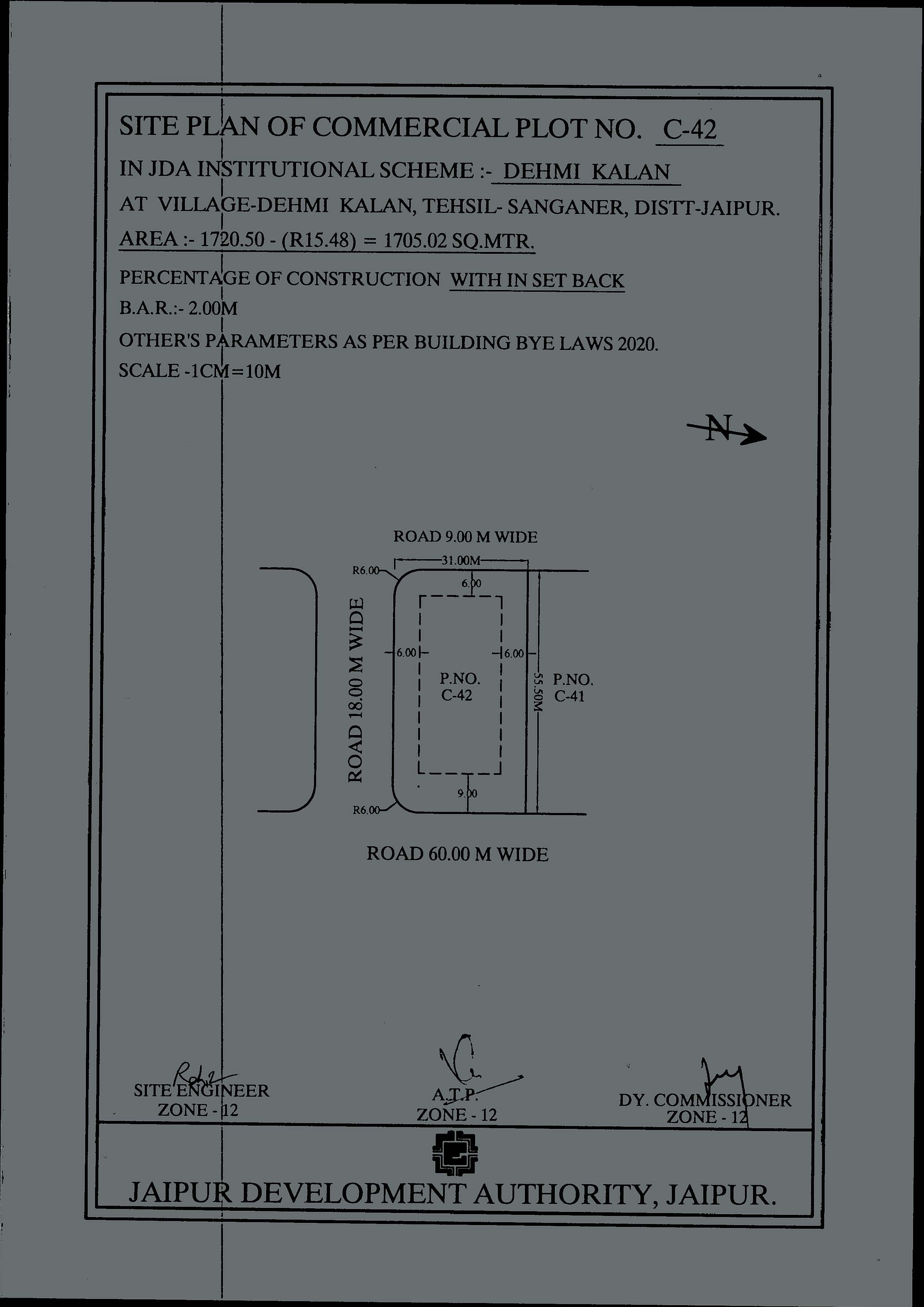 | Remarks | : | Commercial Plot No. C-42(Corner) Insititutional Scheme Village-Dehmikalla, Jaipur | |||||||