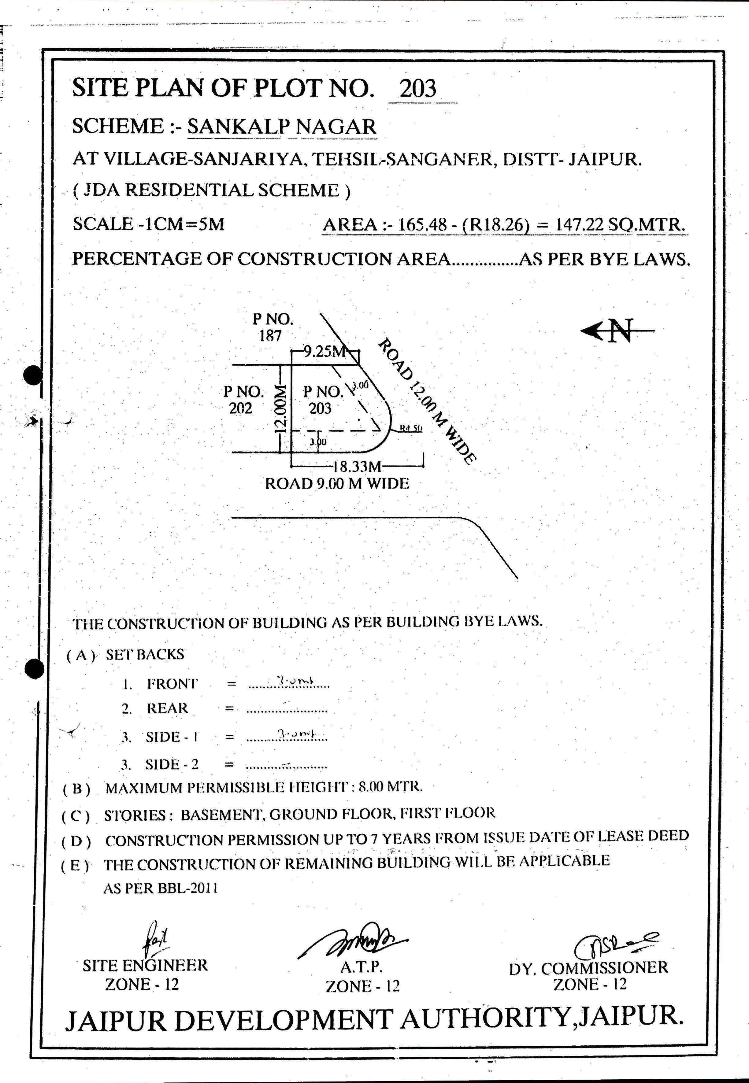 | Remarks | : | Residantial Plot No. 203(Corner) Sankalp Nagar, Jaipur | |||||||