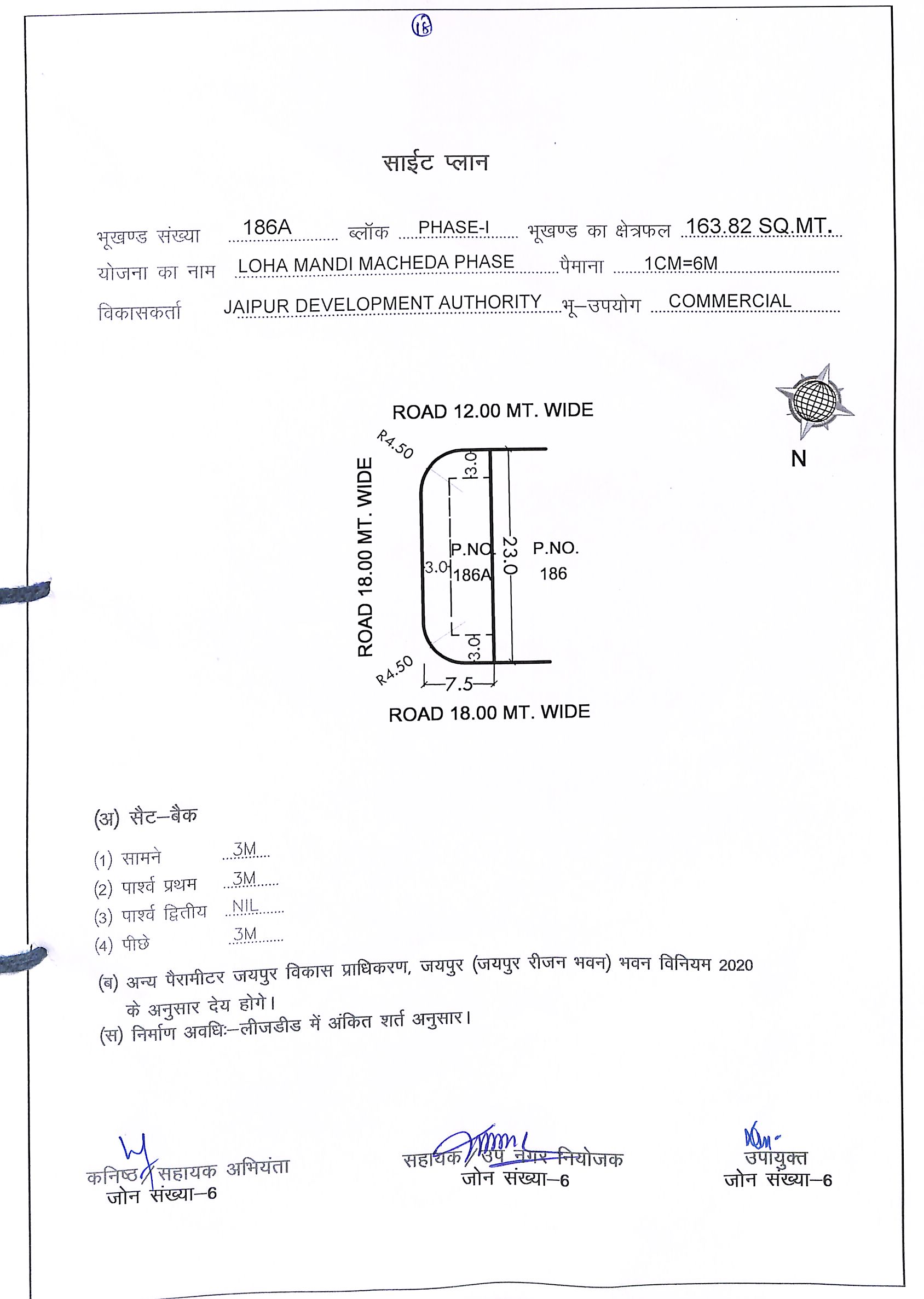 | Remarks | : | Commercial Plot No. 186 A (Corner) Loha Mandi Macheda Phase-I, Jaipur | |||||||