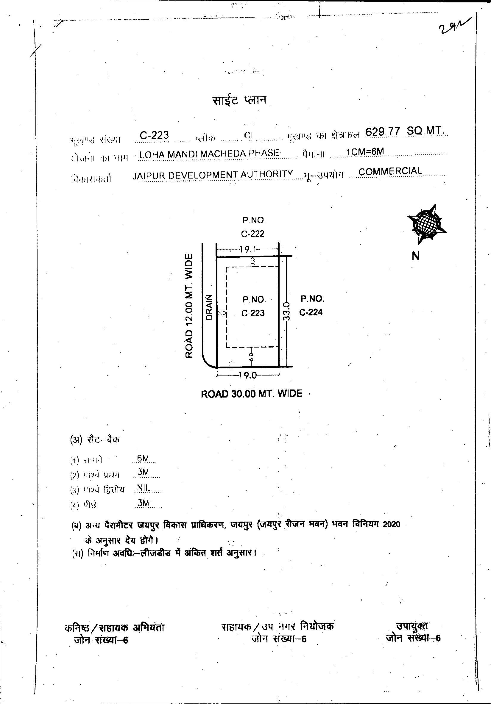 | Remarks | : | Commercial Plot No. C-223(Corner), Lohamandi (Block-C) Scheme, Jaipur | |||||||