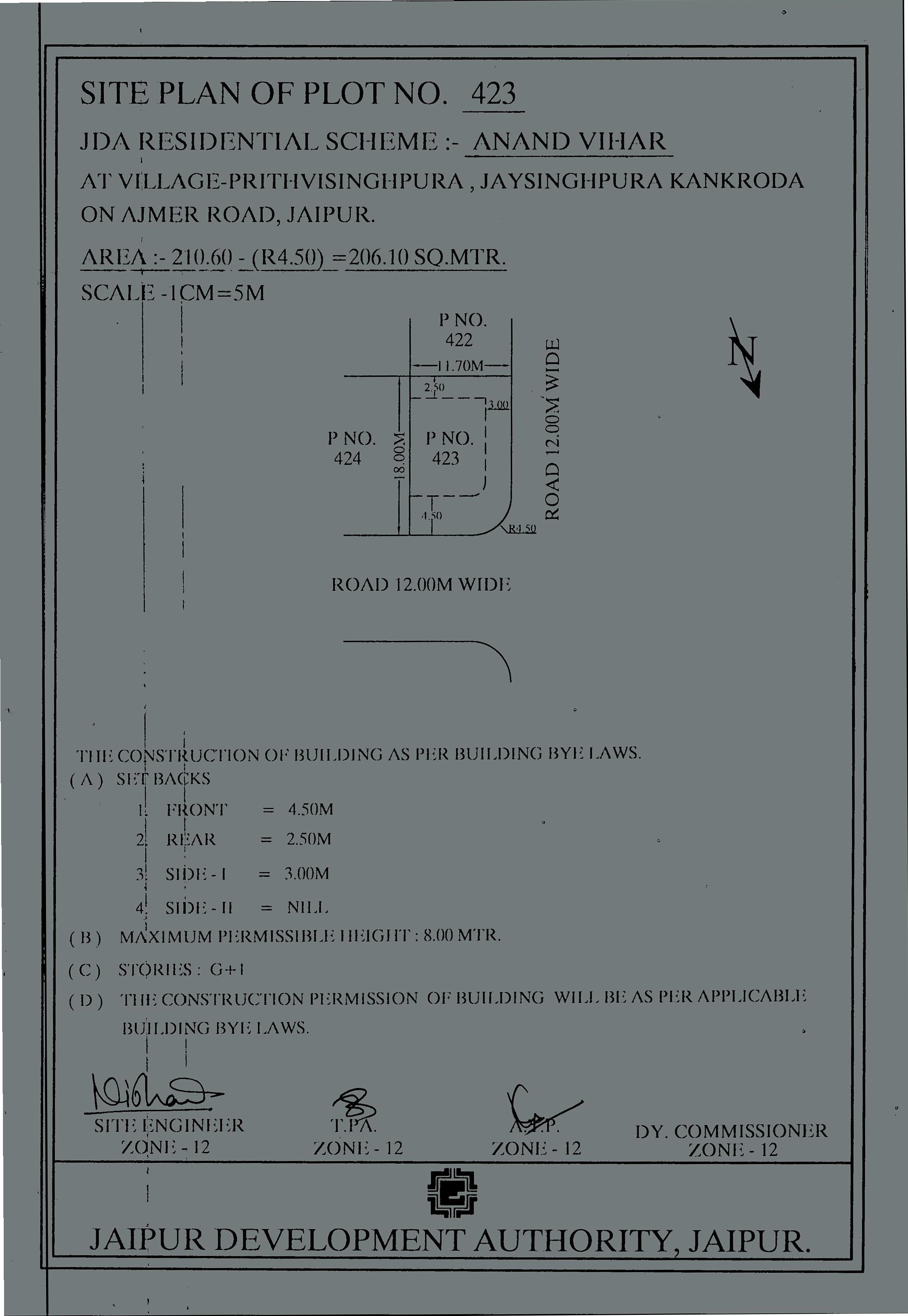 | Remarks | : | Residential Plot No.423 (Corner) Anand Vihar Scheme, Jaipur | |||||||