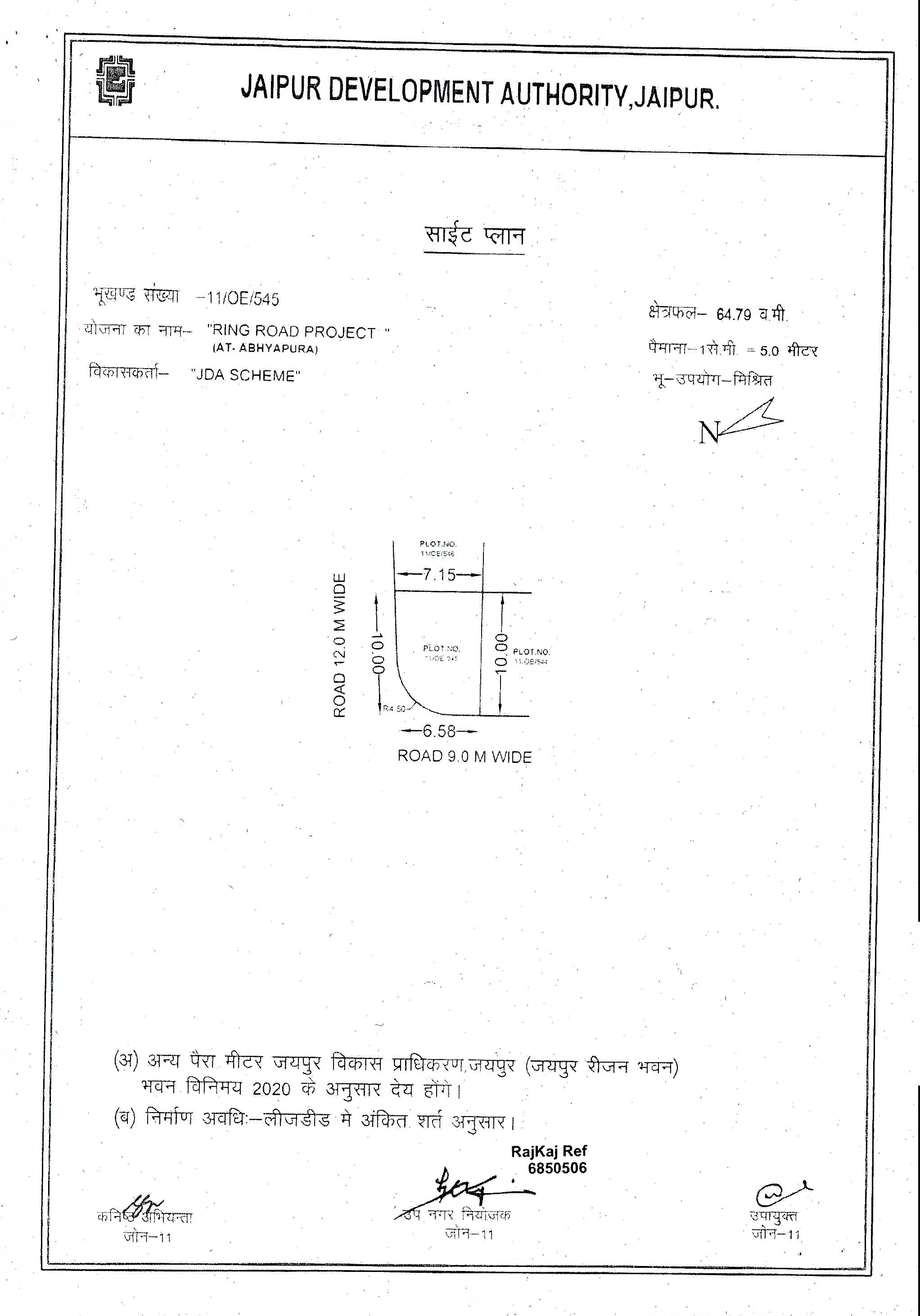 | Remarks | : | Mix Use Plot No. 11/OE/545(Corner) Ring Road Project Vill-Abhyapura, Jaipur | |||||||