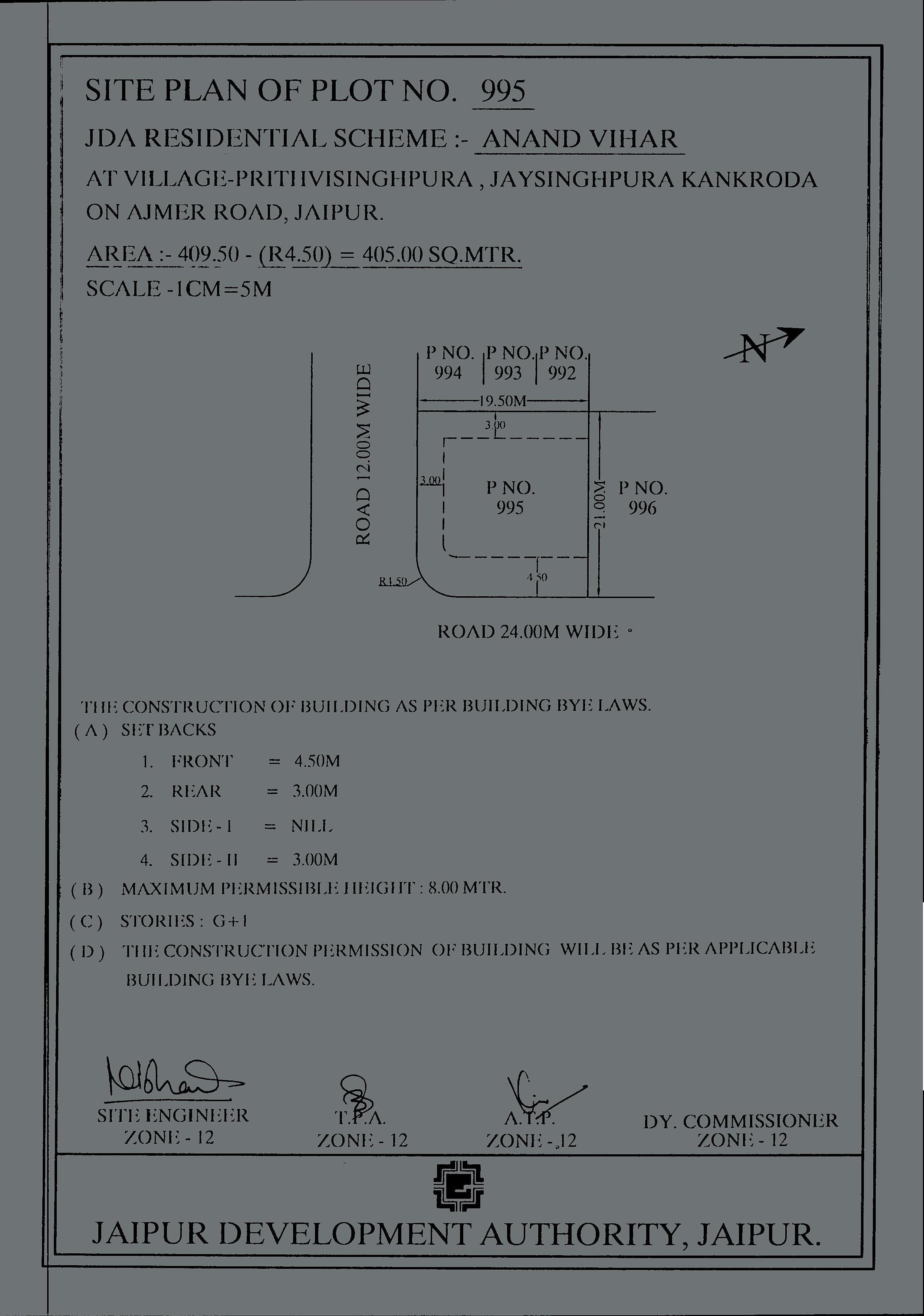 | Remarks | : | Residential Plot No. 995(Corner) Anand Vihar Scheme, Jaipur | |||||||
