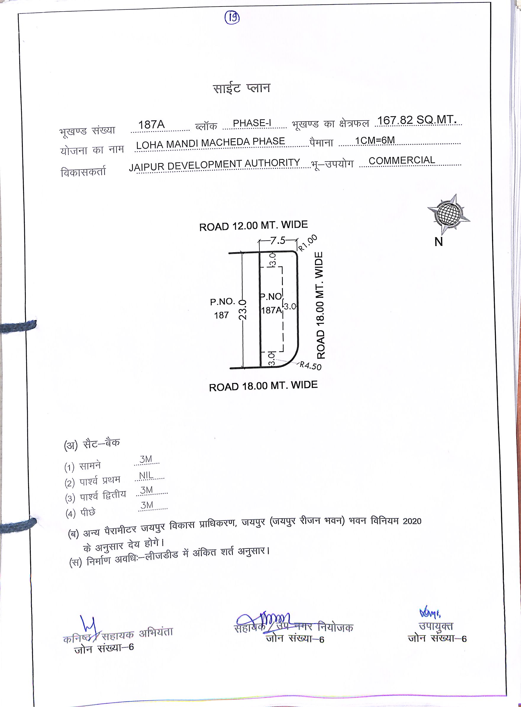| Remarks | : | Commercial Plot No. 187 A (Corner) Loha Mandi Macheda Phase-I, Jaipur | |||||||