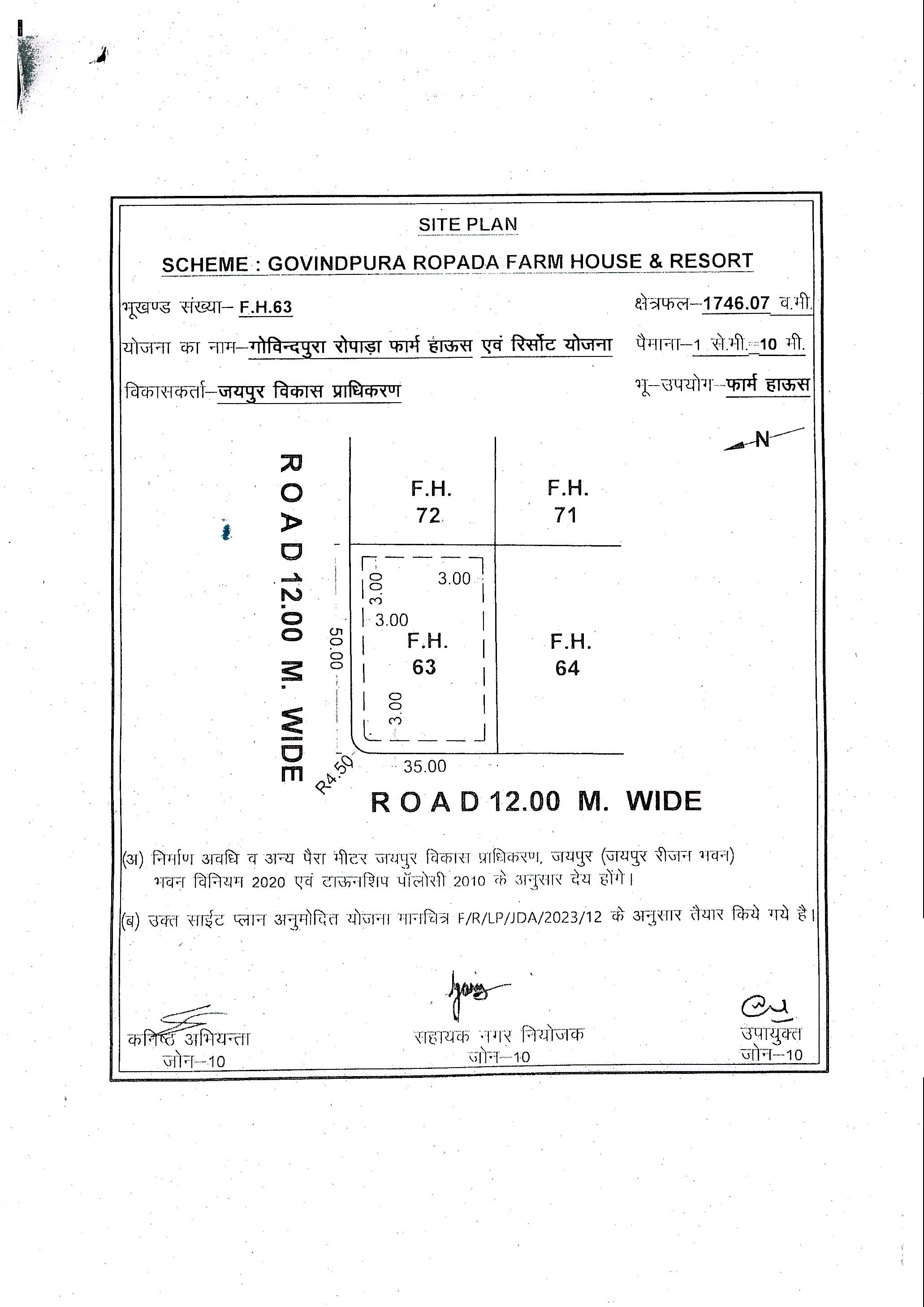 | Remarks | : | Farm House Plot No. FH-63(Corner) Govindpura Ropada Scheme, Jaipur | |||||||