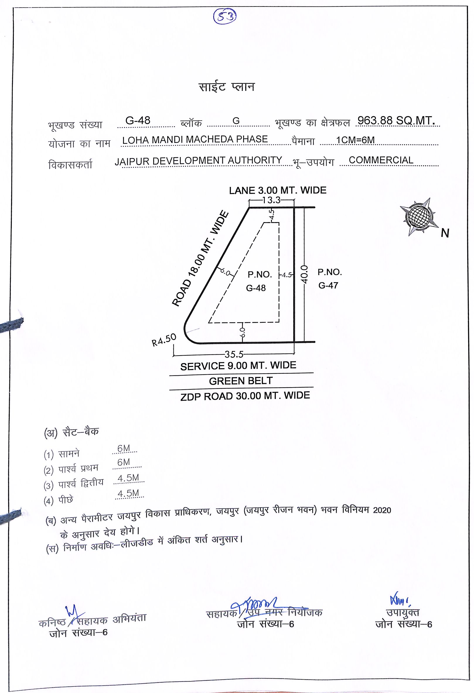| Remarks | : | Commercial Plot No. G-48 (Corner) Loha Mandi Macheda Phase-I, Jaipur | |||||||