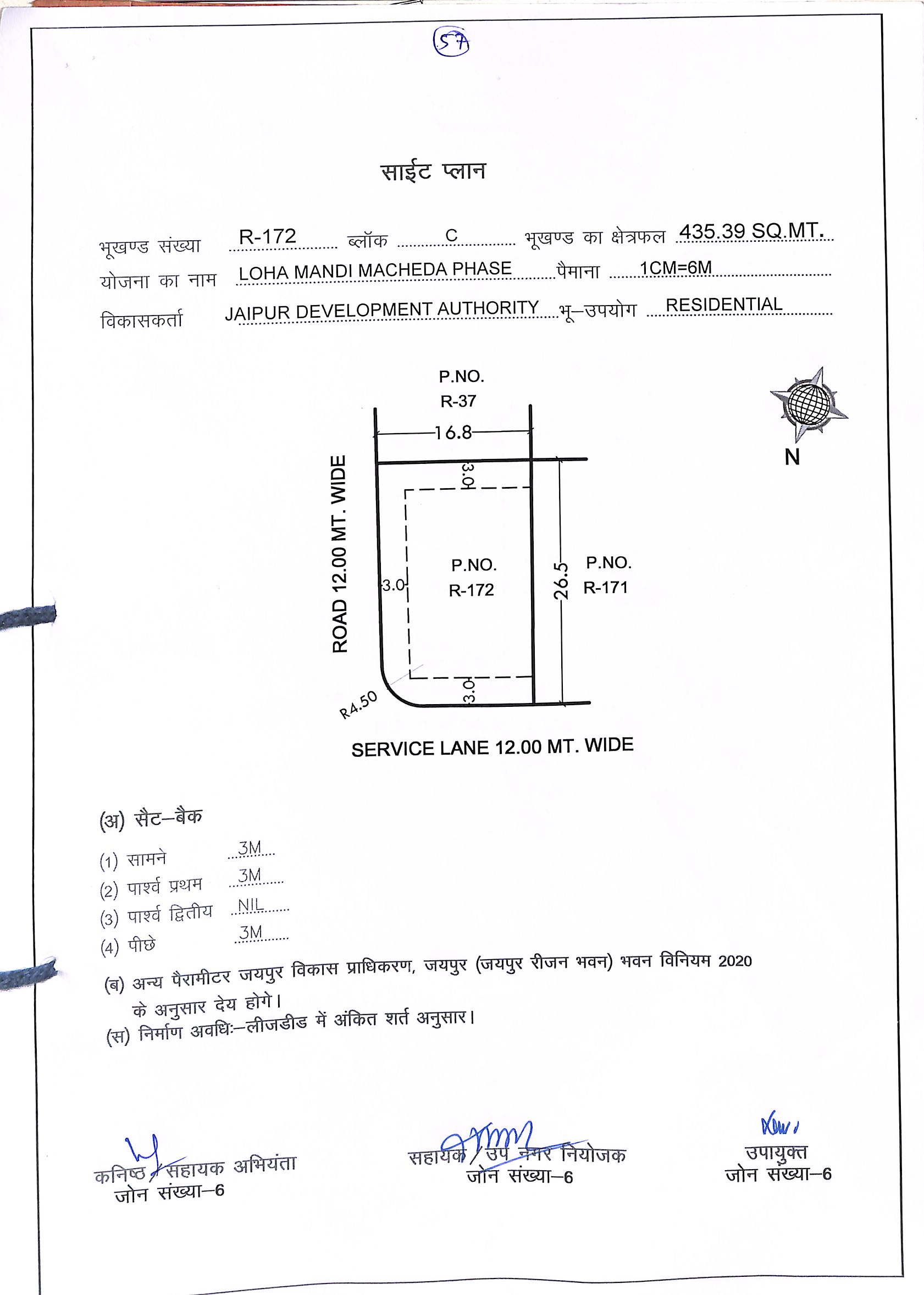 | Remarks | : | Residential Plot No. R-172 (Corner) Loha Mandi Macheda Phase-I, Jaipur | |||||||