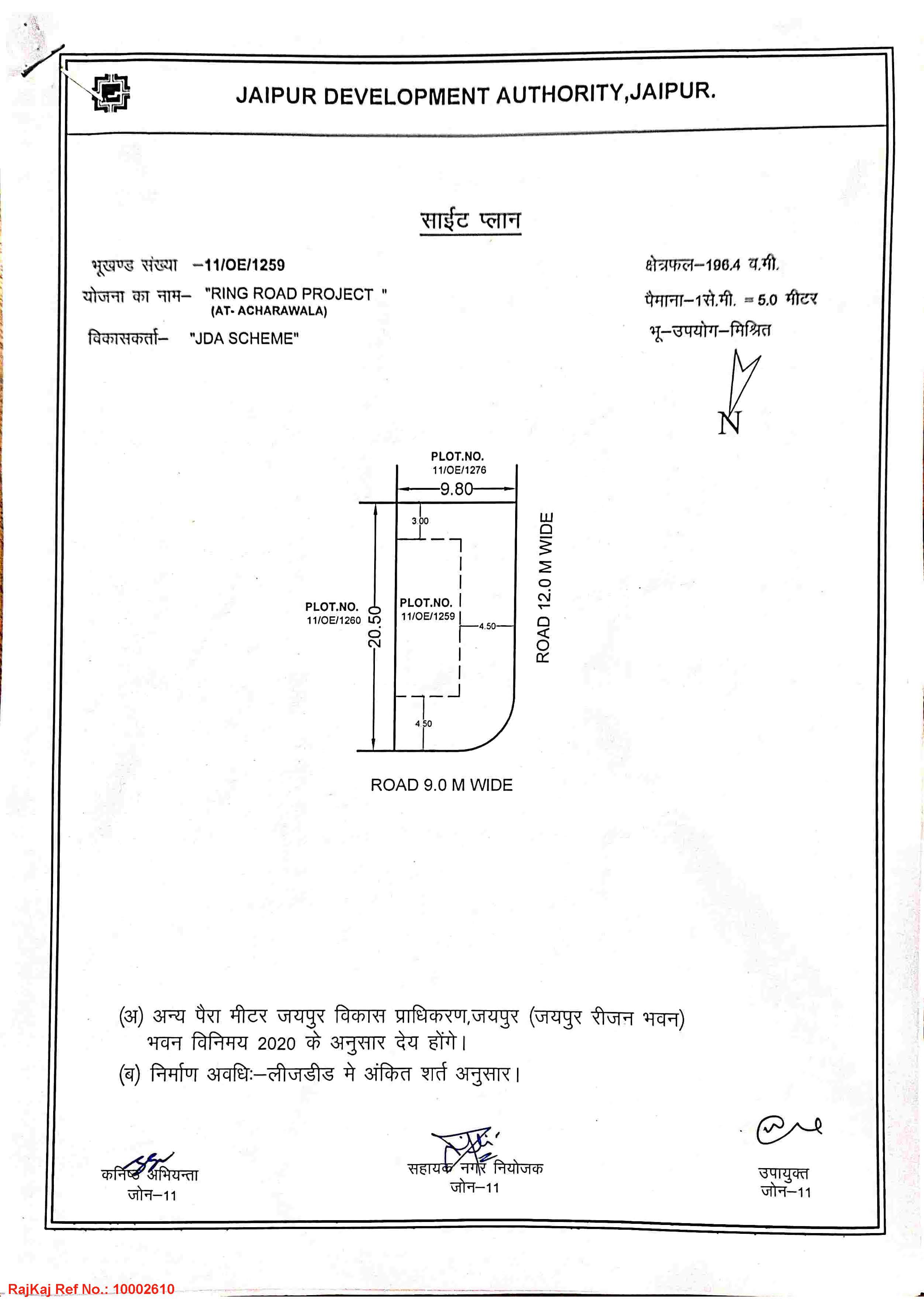 | Remarks | : | Mix Use Plot No. 11/OE/1259 (Corner) Ring Road Project Vill-Acharawala, Jaipur | |||||||