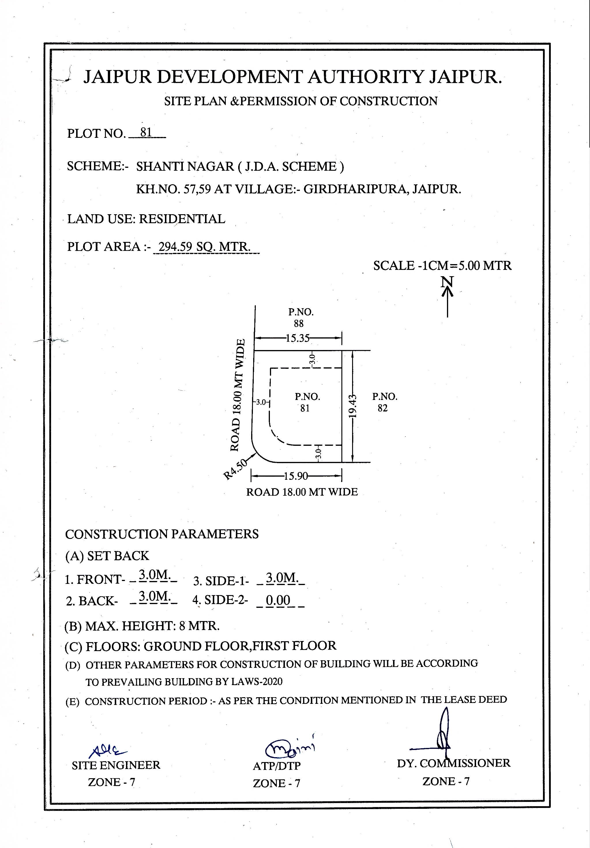 | Remarks | : | Residential Plot No. 81(Corner), Shanti Nagar, Jaipur | |||||||