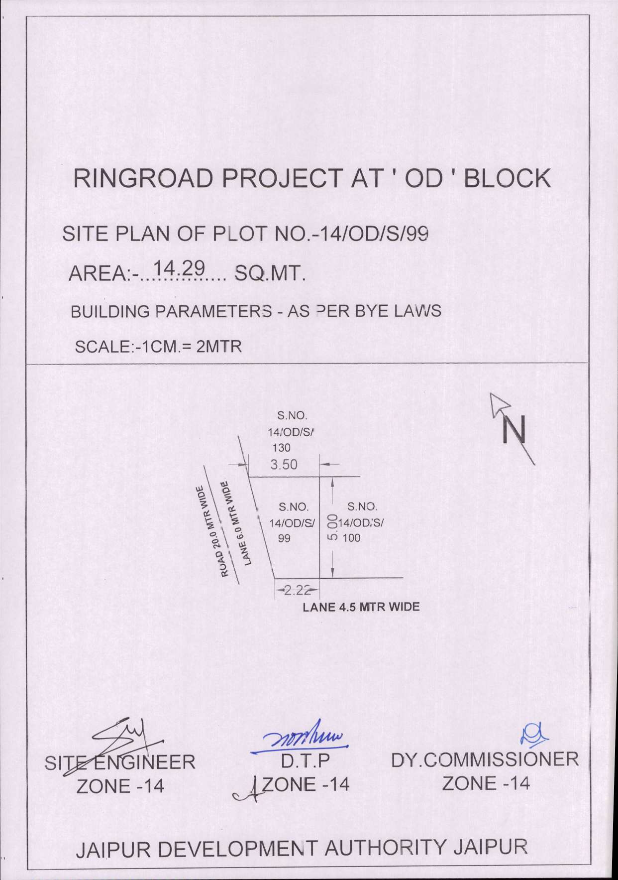 | Remarks | : | Mix Use Plot No. 14/OD/S/99 (Corner) Ring Road Project Vill-Shyampura Buharyia, Jaipur | |||||||
