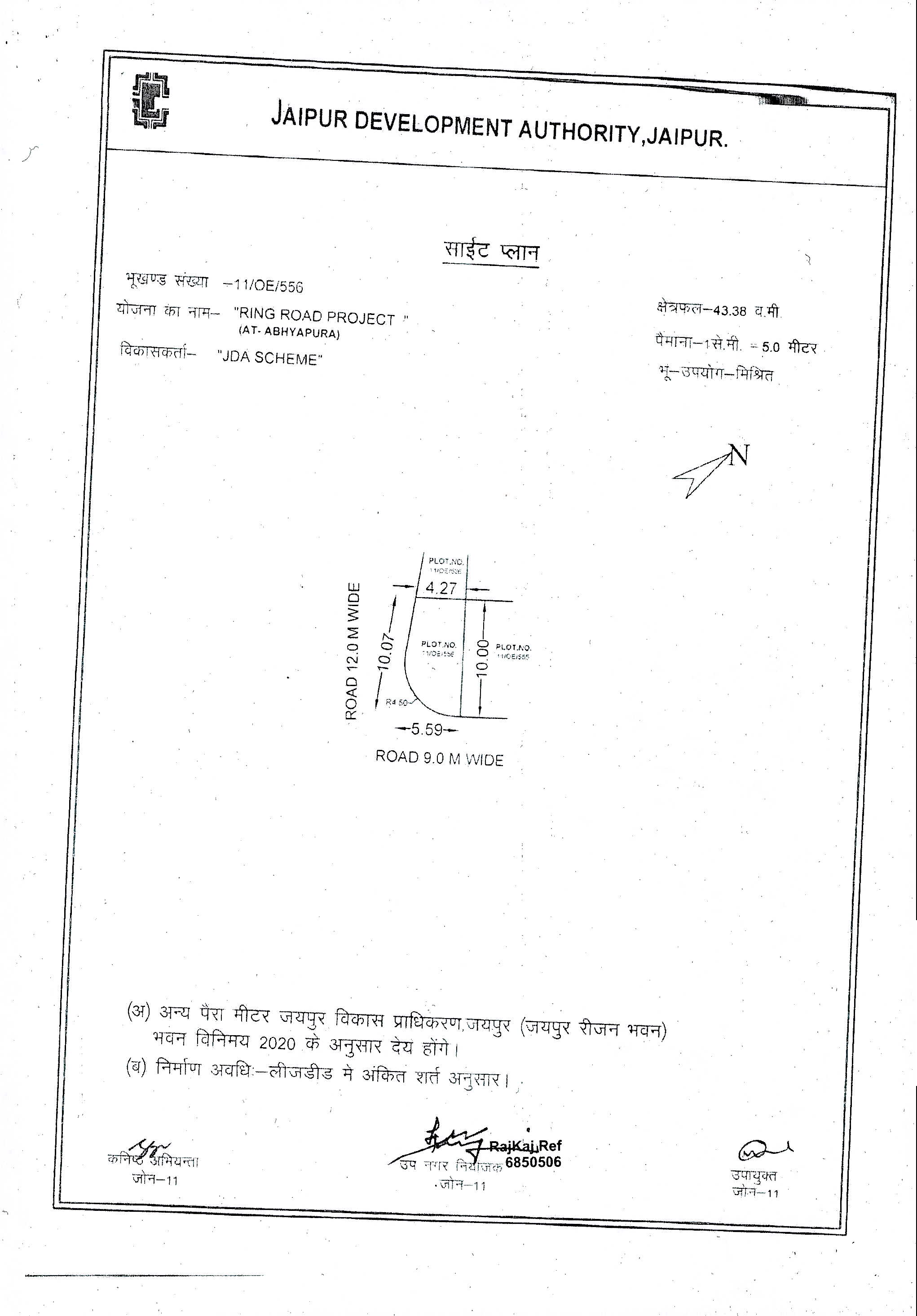 | Remarks | : | Mix Use Plot No. 11/OE/556(Corner) Ring Road Project Vill-Abhyapura, Jaipur | |||||||