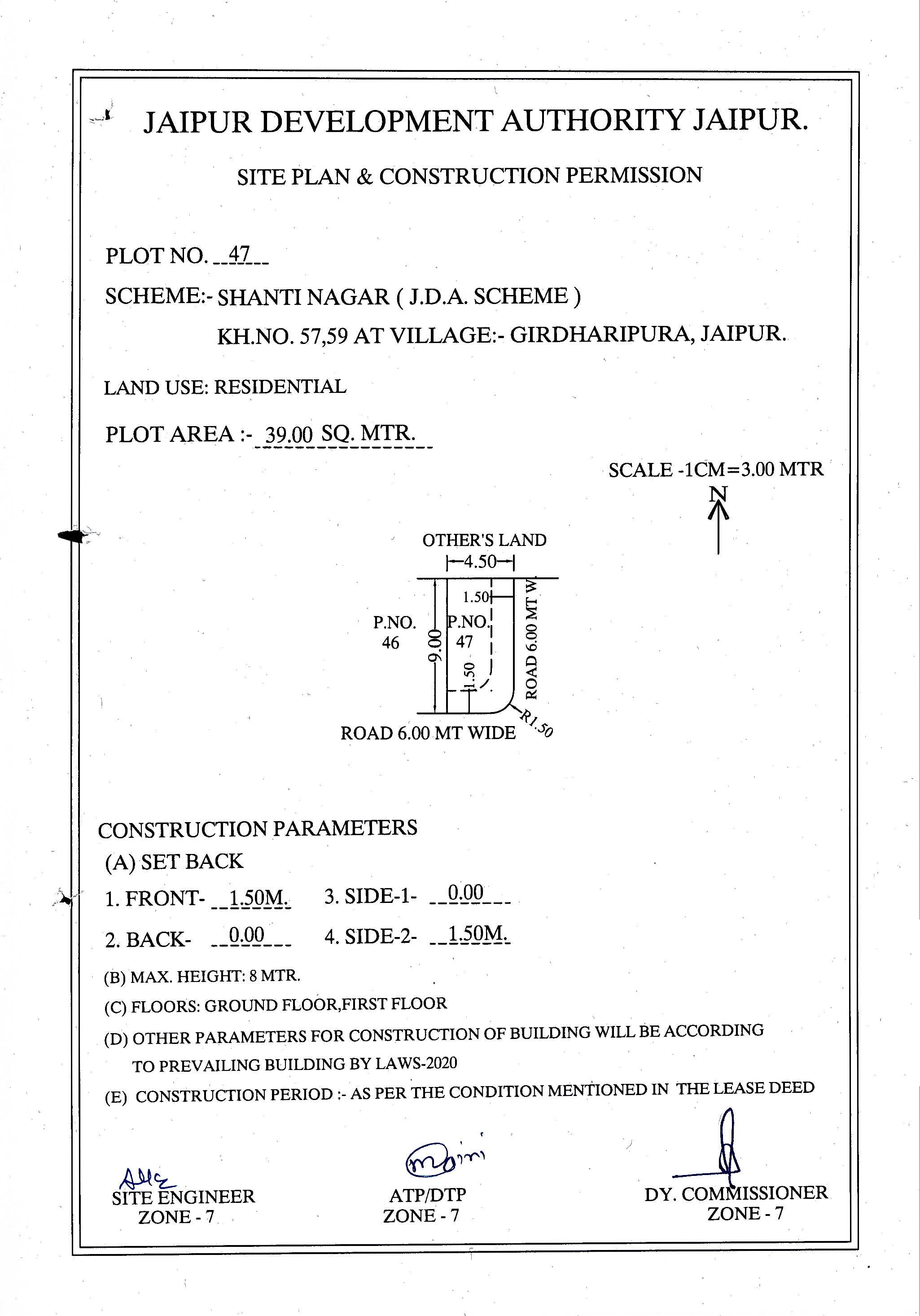 | Remarks | : | Residential Plot No. 47(Corner), Shanti Nagar, Jaipur | |||||||