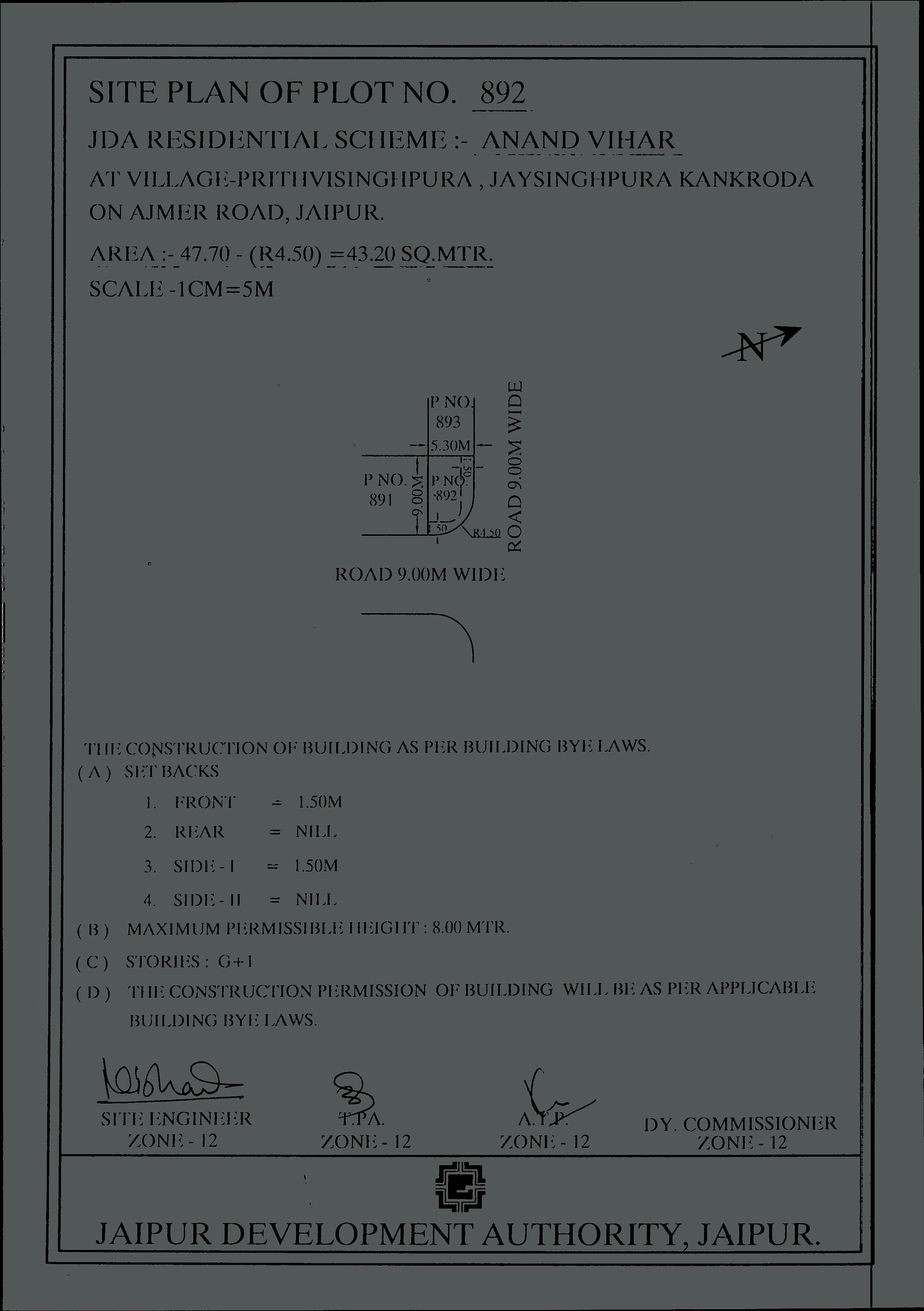 | Remarks | : | Residential Plot No. 892(Corner) Anand Vihar Scheme, Jaipur | |||||||