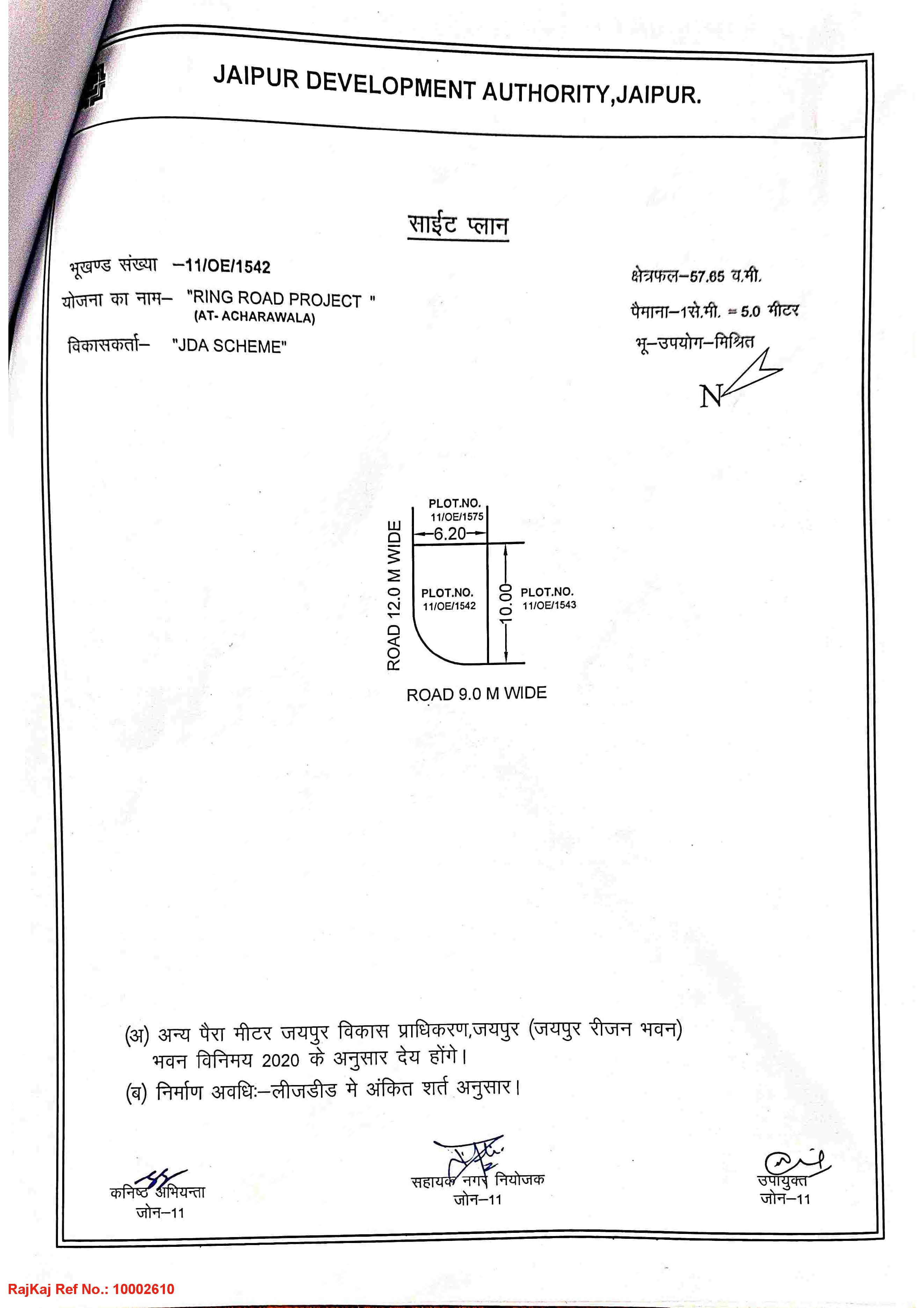 | Remarks | : | Mix Use Plot No. 11/OE/1542 (Corner) Ring Road Project Vill-Acharawala, Jaipur | |||||||