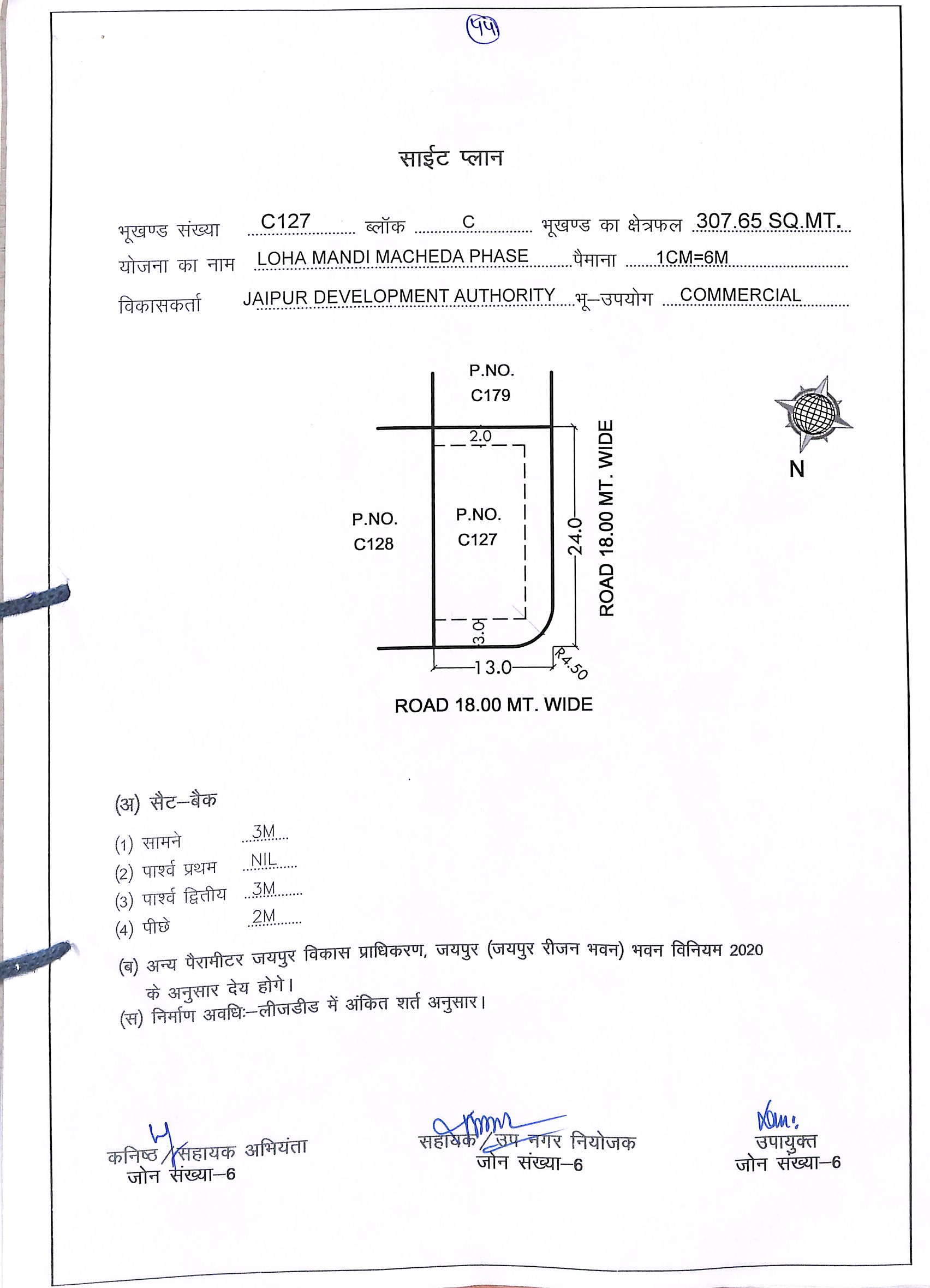 | Remarks | : | Commercial Plot No. C-127 (Corner) Loha Mandi Macheda Phase-I, Jaipur | |||||||