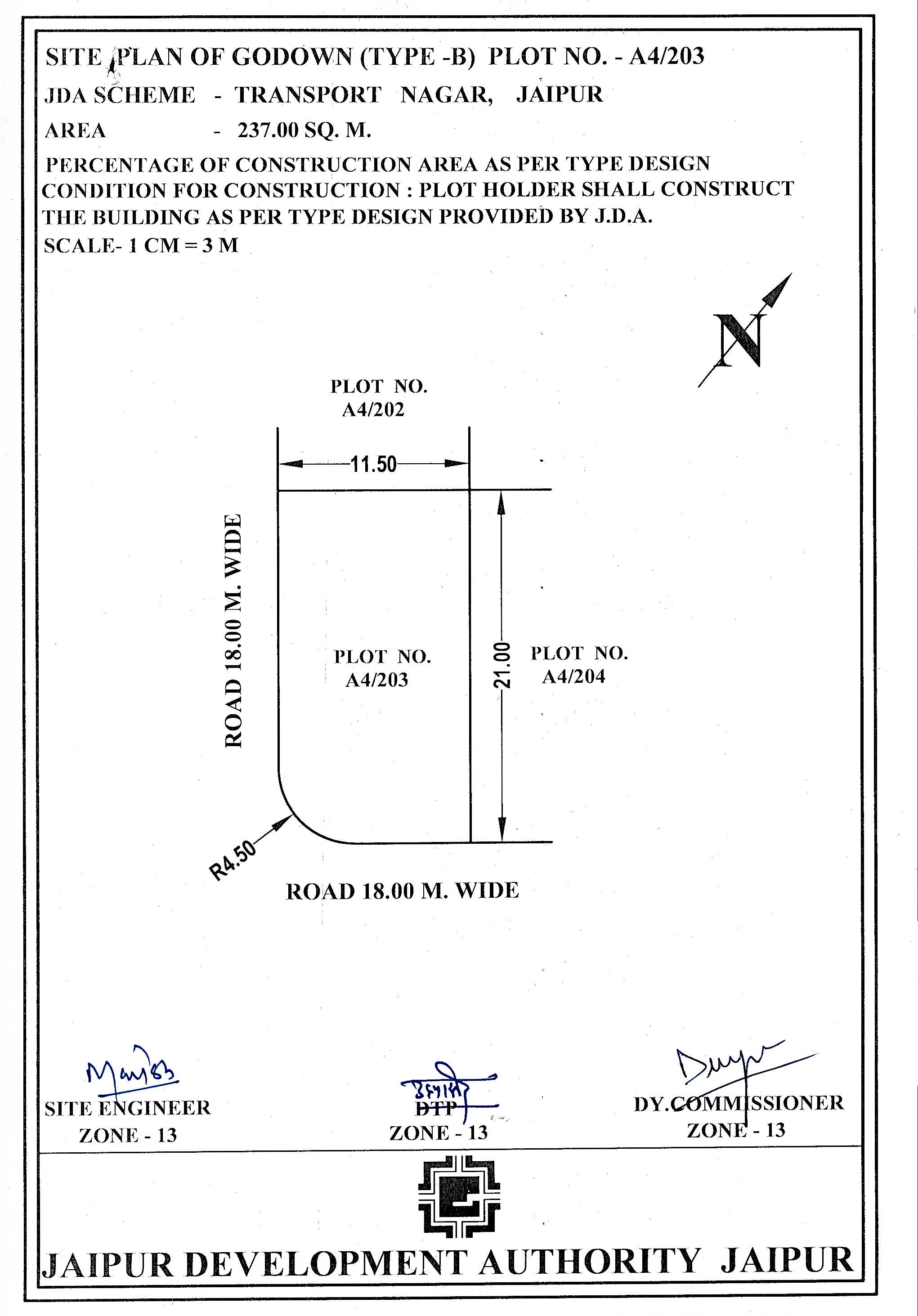 | Remarks | : | Godown(Type-B) Plot No.A4/203 (Corner) Transport Nagar Sikar Road, Jaip | |||||||