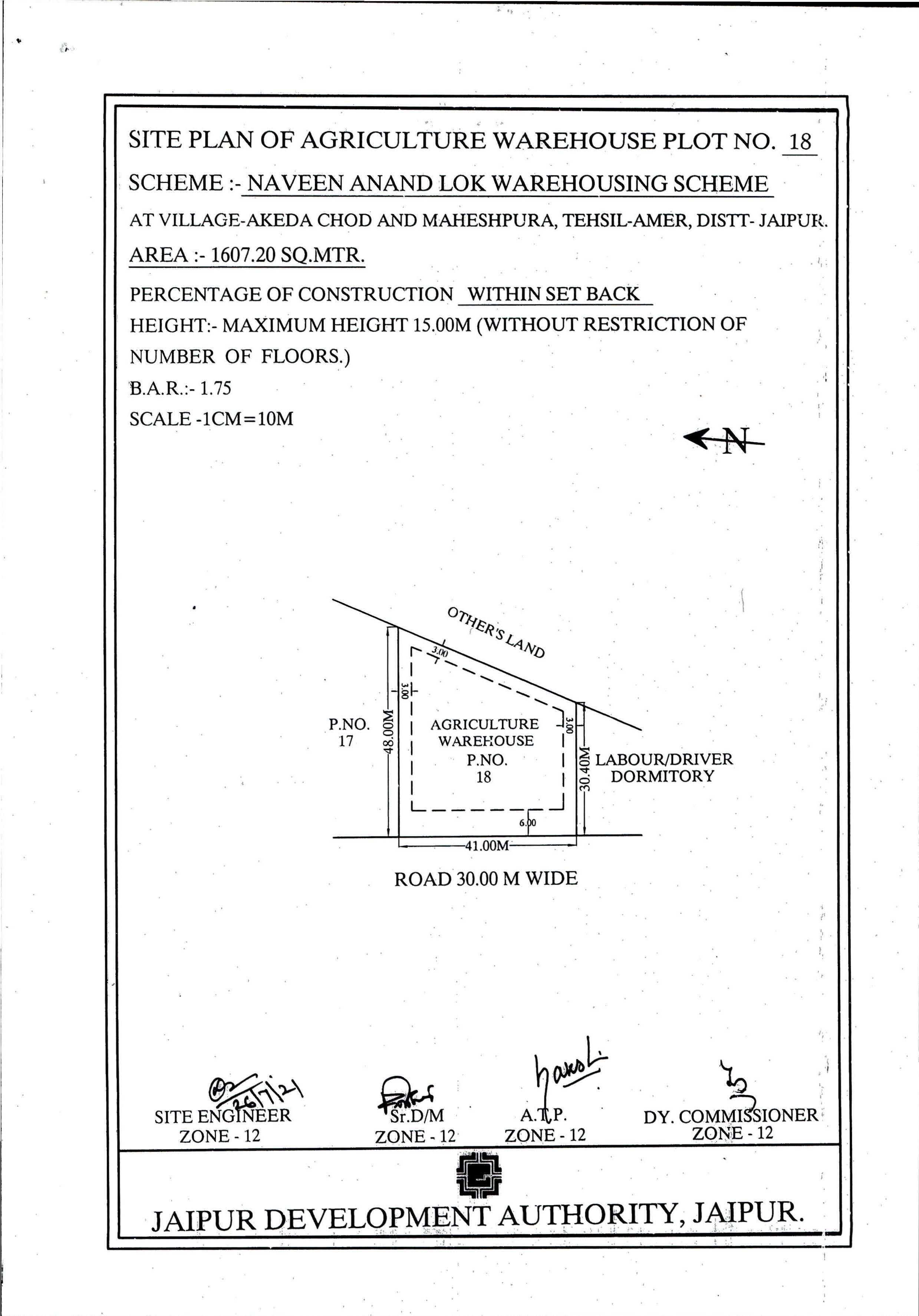 | Remarks | : | Agriculture Ware House Plot No. 18 New Anandlok Ware House Scheme, Jaipur | |||||||