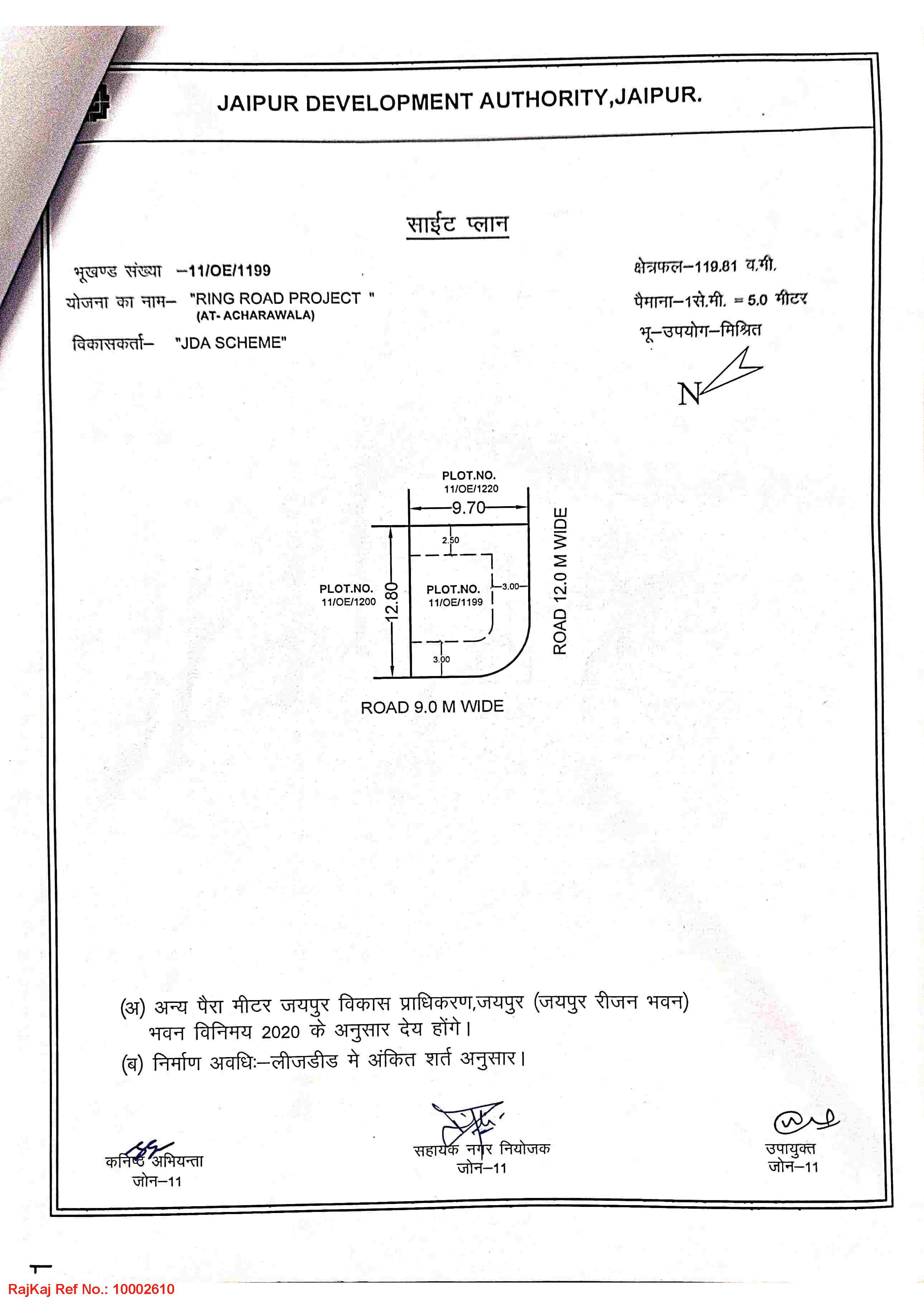 | Remarks | : | Mix Use Plot No. 11/OE/1199 (Corner) Ring Road Project Vill-Acharawala, Jaipur | |||||||