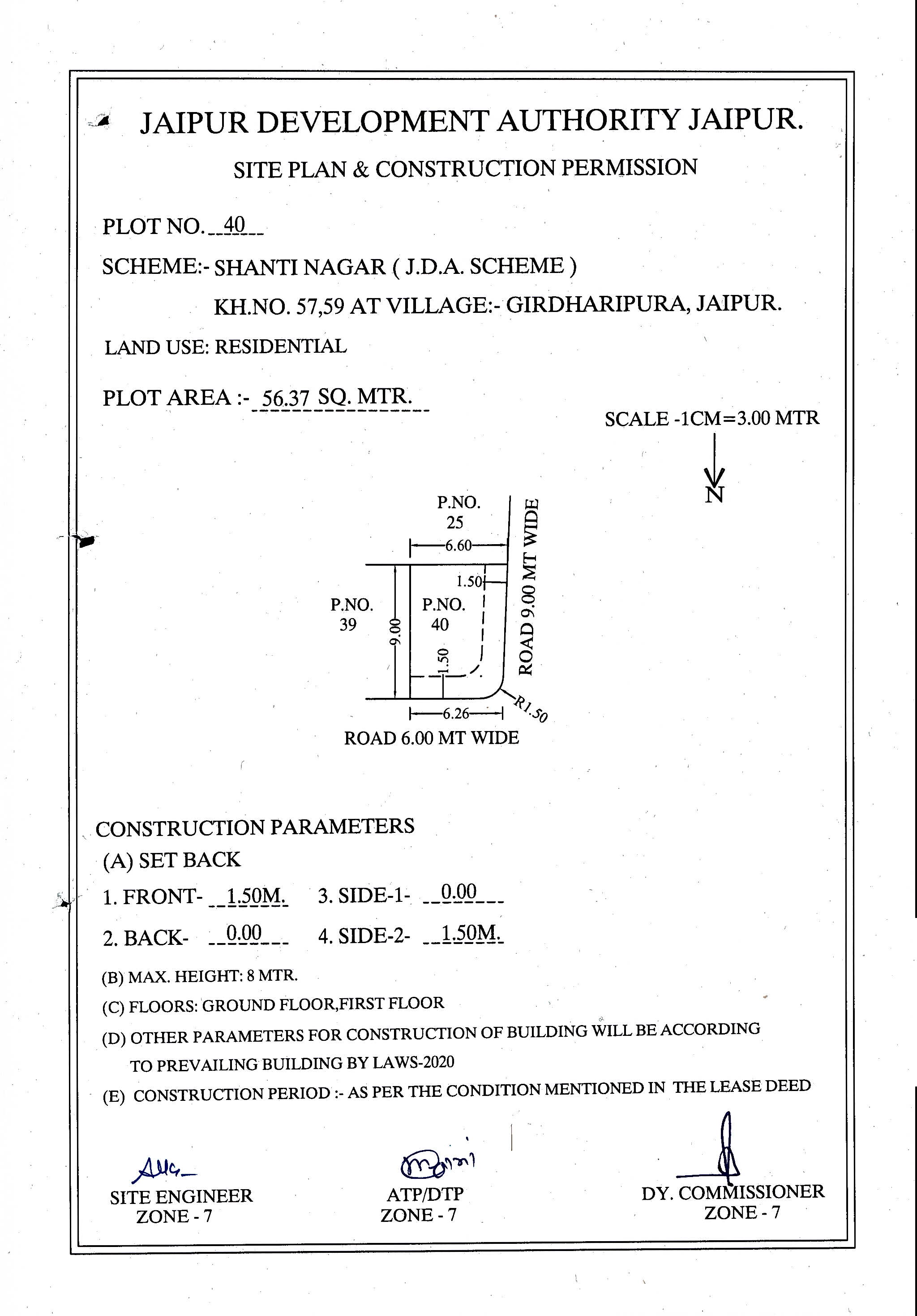 | Remarks | : | Residential Plot No. 40(Corner), Shanti Nagar, Jaipur | |||||||