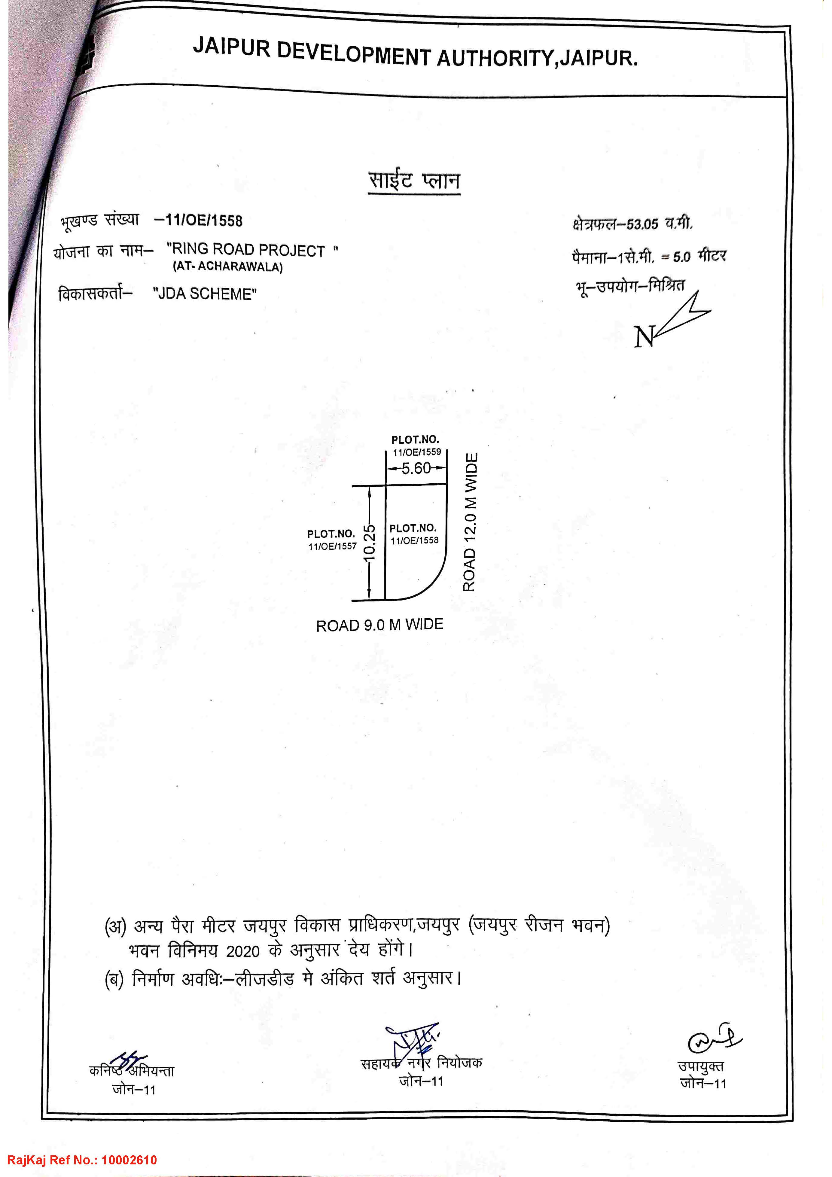 | Remarks | : | Mix Use Plot No. 11/OE/1558 (Corner) Ring Road Project Vill-Acharawala, Jaipur | |||||||