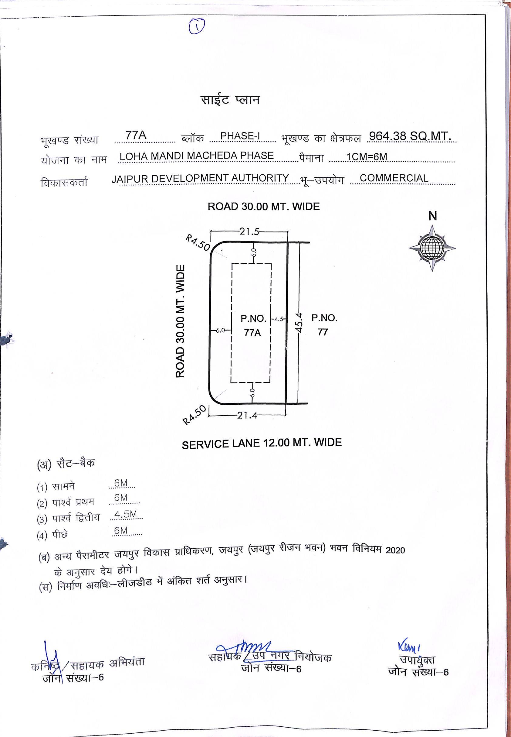 | Remarks | : | Commercial Plot No. 77A(Corner) Loha Mandi Macheda Phase-I, Jaipur | |||||||