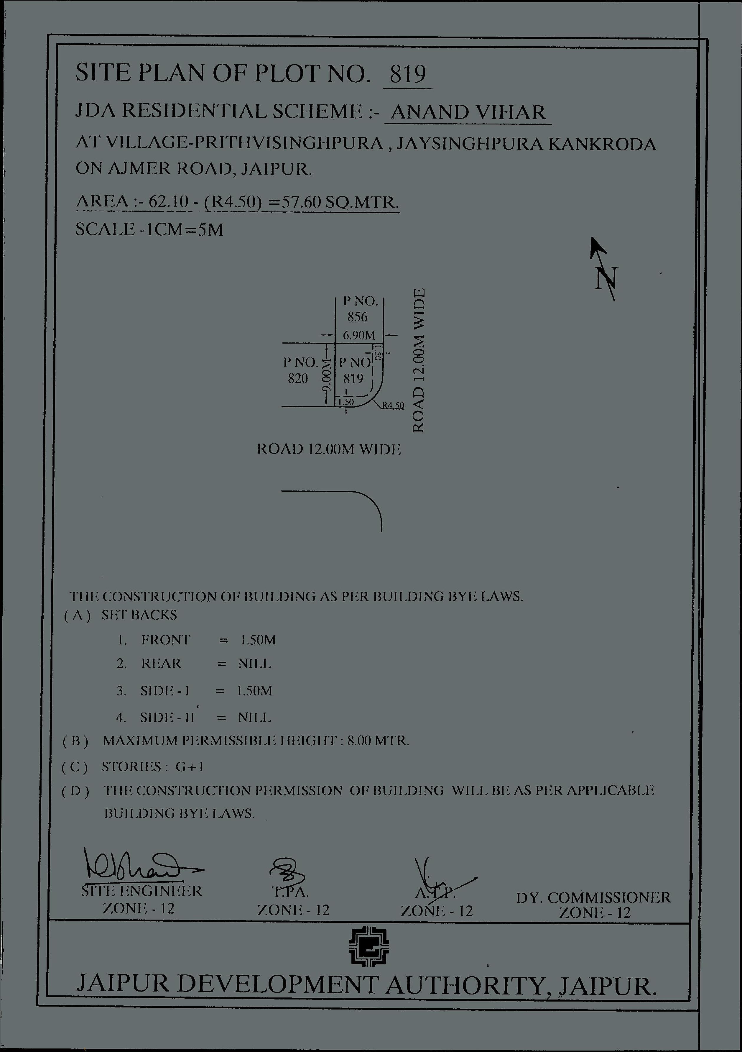 | Remarks | : | Residential Plot No. 819(Corner) Anand Vihar Scheme, Jaipur | |||||||