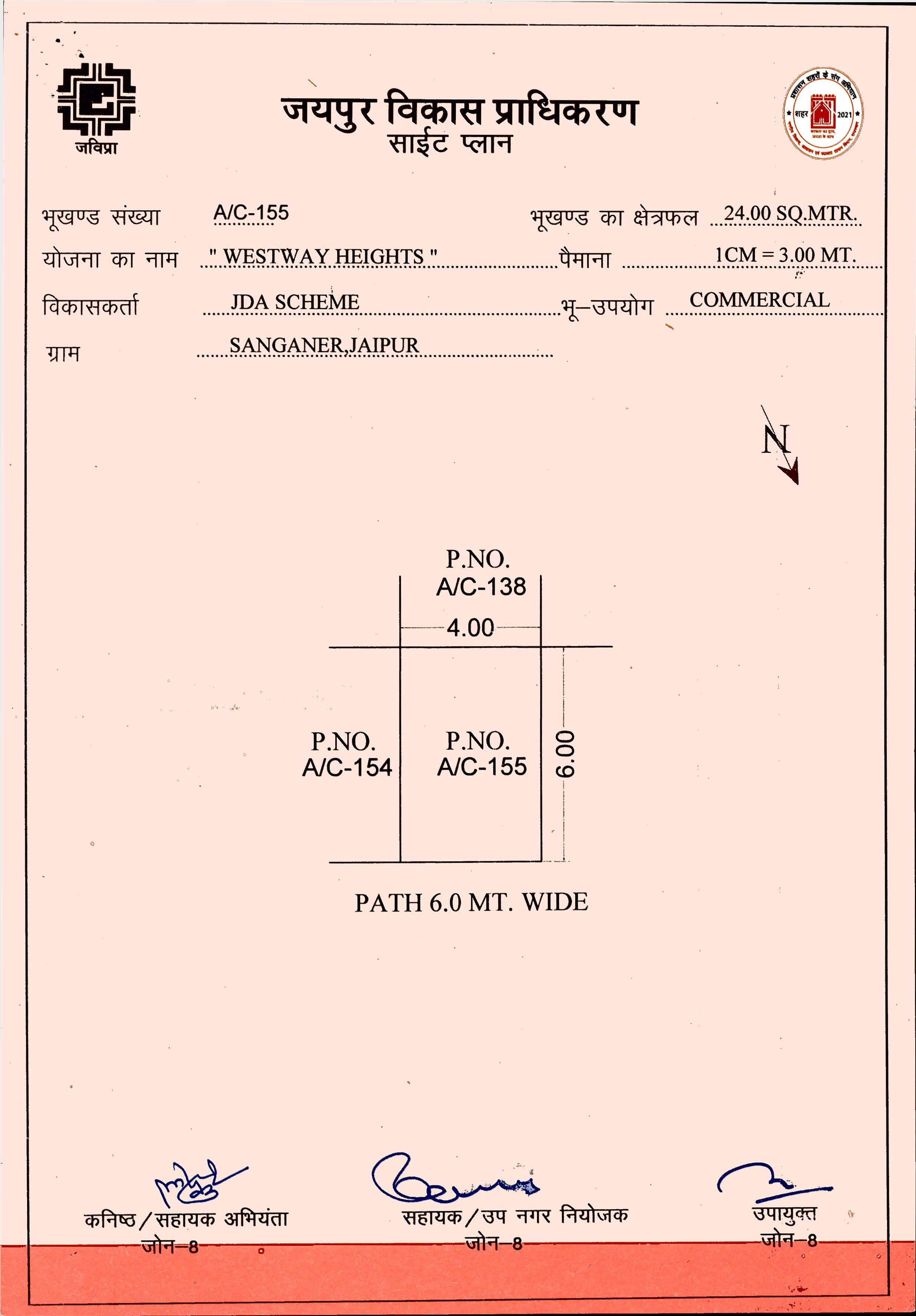 | Remarks | : | Commercial Plot No. A/C-155(SC) West Way Heights Scheme Jaipur | |||||||