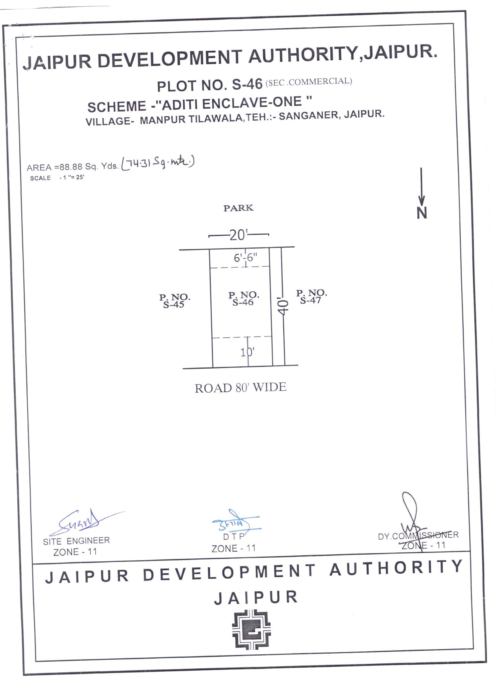 | Remarks | : | Commercial Plot No. S-46 Aditi Enclave One Scheme, Jaipur | |||||||