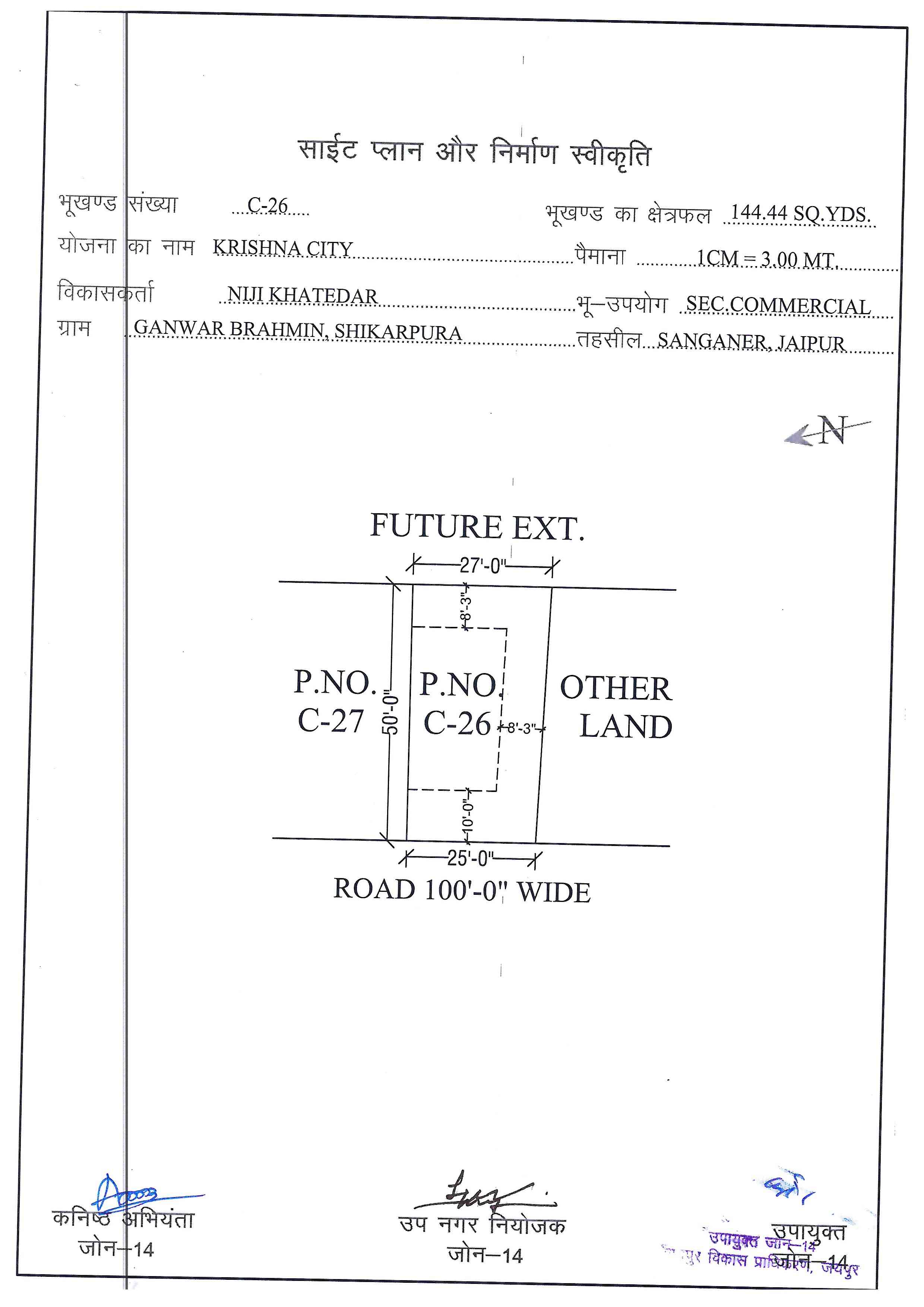 | Remarks | : | Sector Commercial Plot No. C-26, Krishana City, Jaipur | |||||||